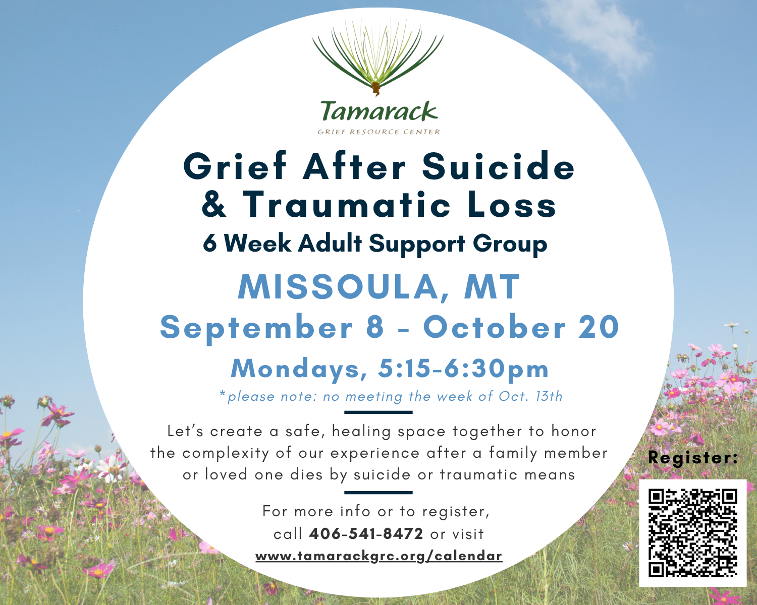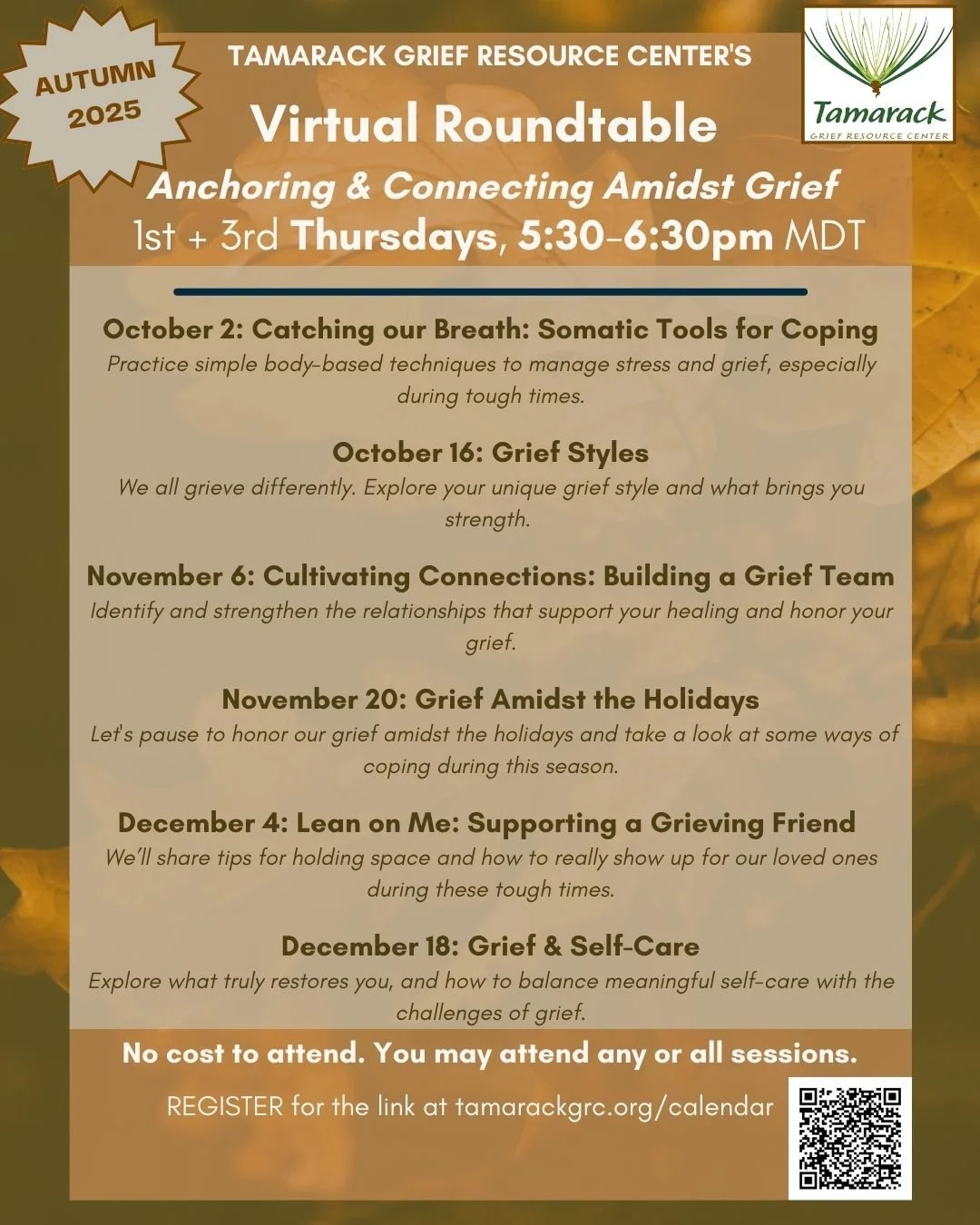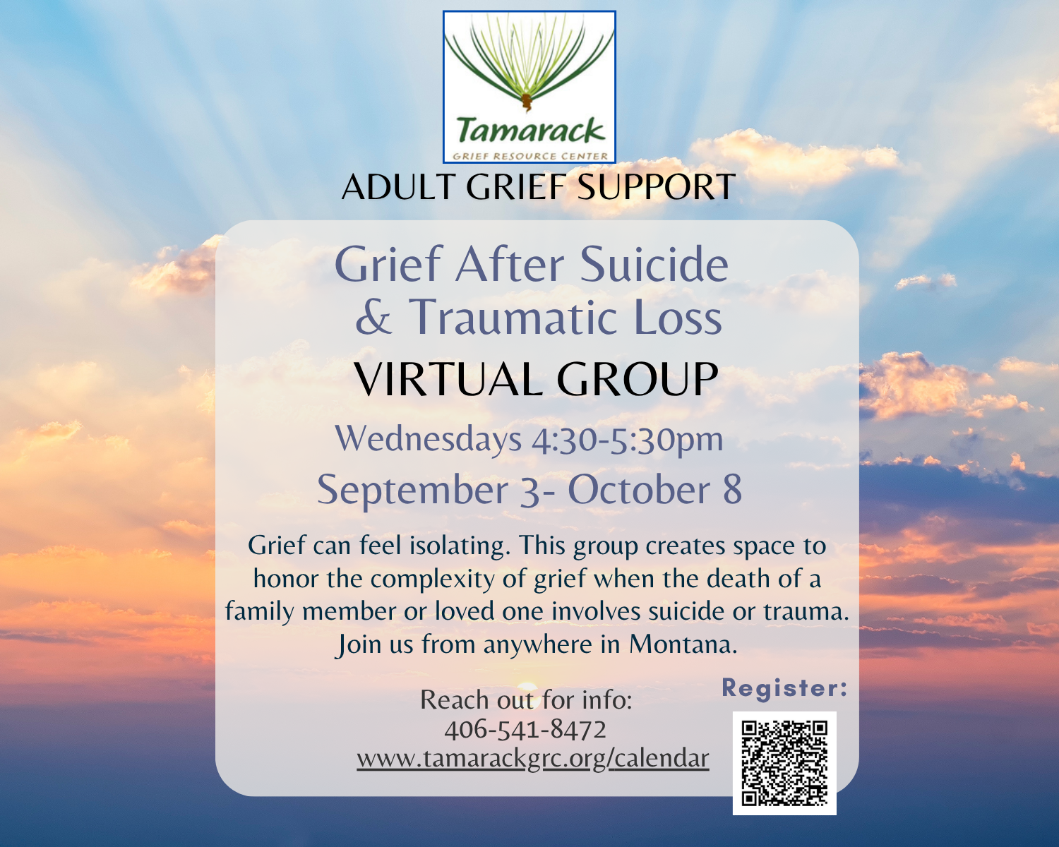 Register at: https://tamarackgriefresourcecenter.app.neoncrm.com/np/clients/tamarackgriefresourcecenter/eventRegistration.jsp?event=4846&